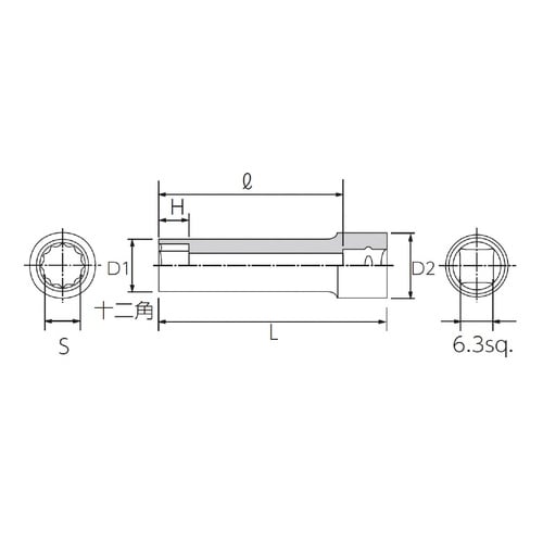 差込角(sq.):6.3 | サイズ(S;mm):10 | ソケット部外径(D1;mm):14.5 | 差し込み部外径(D2;mm):13.5 | 深…