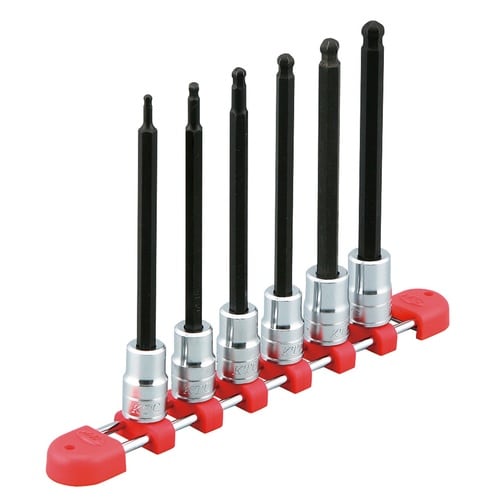差込角9.5sq.のロングボールポイントヘキサゴンビットソケットセット |