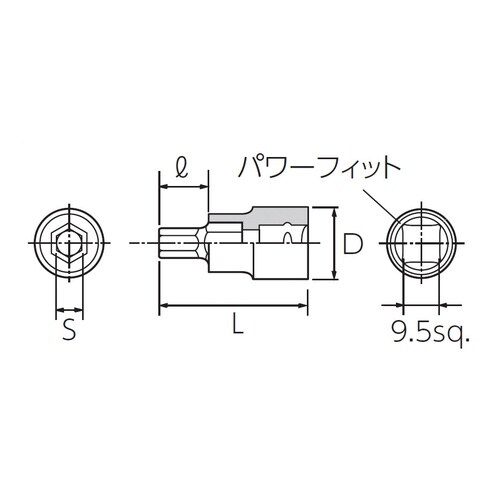 差込角9.5sq.のスタッビヘキサゴンビットソケット |