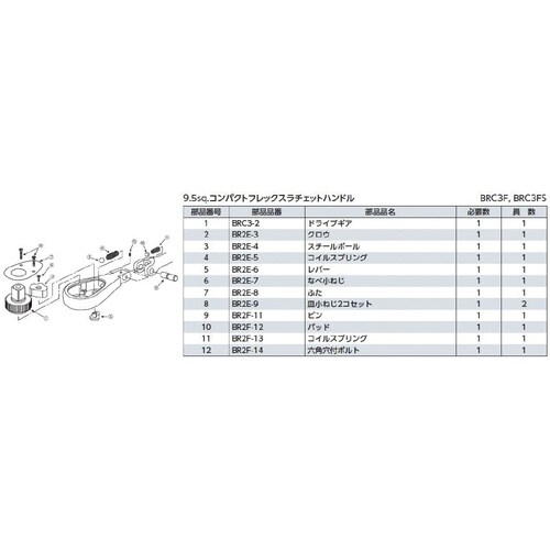 1/4”SQのボディーに3/8”SQのドライブを組み込んだコンパクトタイプのラチェット |