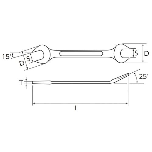 サイズ(S;mm):17 | スパナ部幅(D1;mm):36 | メガネ部幅(D2;mm):24 | スパナ部厚み(T1;mm):4.3 | メガネ部…