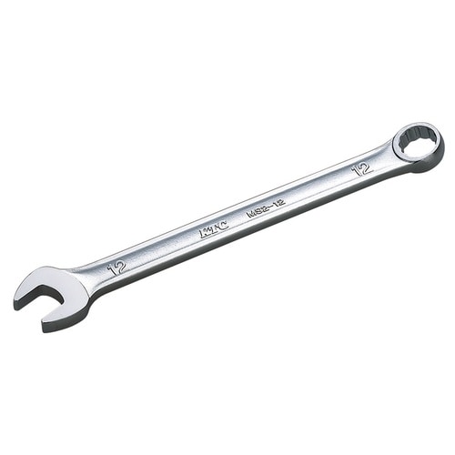柄は中央にくぼみを持たせ、しなりに強く軽量化も図れる断面形状。サイズ表示は大きく見やすい鍛造浮き出し刻印です。めがね側十二角タイプのコンビネーションレンチです。