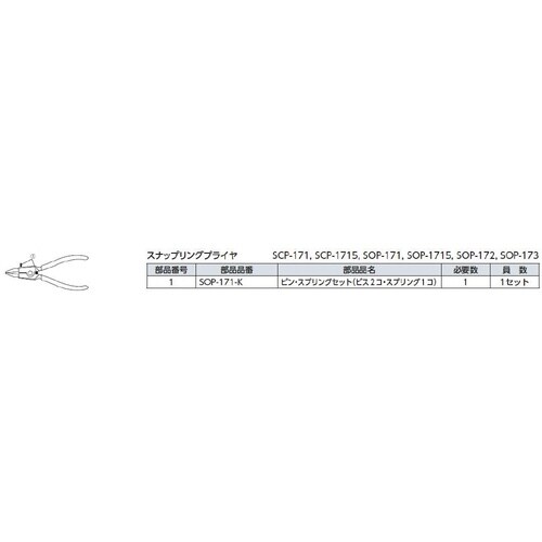 ストレートヘッドの穴用直型スナップリングプライヤです。本体のカシメ部はガタ付きが少なく、開閉はバネ付です。クローの交換が可能です。