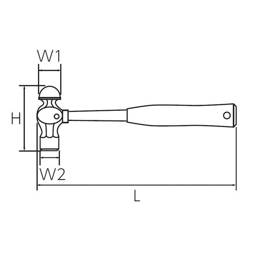 サイズ(ポンド):1.5 | 全長(L;mm):340 | 寸法W1(mm):28 | 打撃面(W2;φmm):35 | 寸法H(mm):117 | …