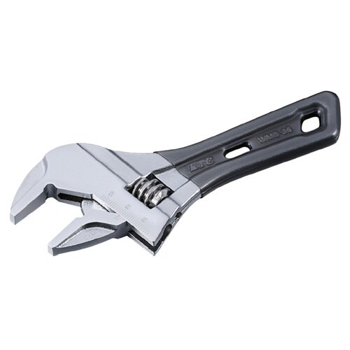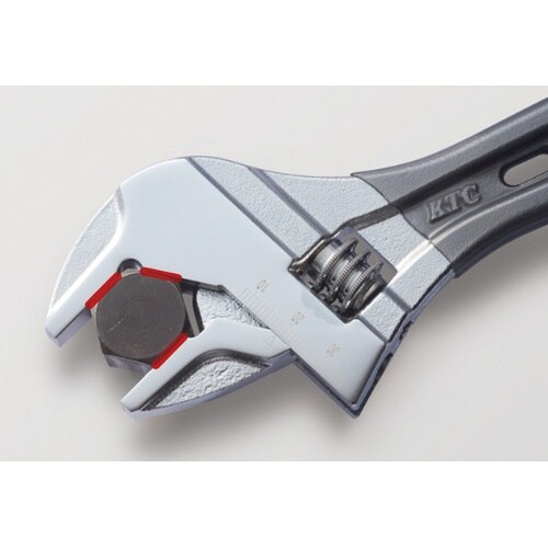 ショートボディで狭い場所での使用が可能です。三面接触とガタをおさえた設計で、ボルトがなめにくく、安定した締め緩めが可能です。配管・水回りの袋ナットなどの大径ナットにも対応。ハンドル部には握り心地を考慮したディッピング加工を採用。便利な目盛り付き。