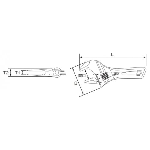 適応二面幅(mm):8ー36 | ヘッド部先端厚み(T1;mm):7.2 | ヘッド部厚み(T2;mm):14.0 | ヘッド部幅(B;mm):70 …