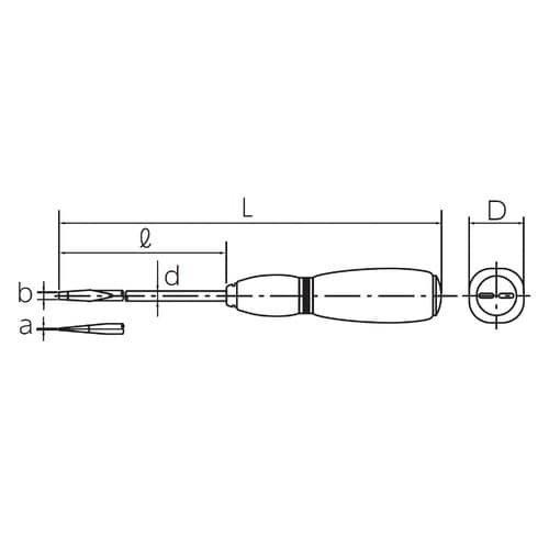 刃先厚(a;mm):0.5 | 刃先幅(b;mm):4 | 軸径(d;mm):4 | グリップ径(D;mm):20 | 全長(L;mm):165 | …