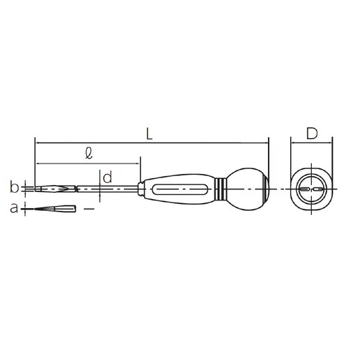 刃先厚(a;mm):0.95 | 刃先幅(b;mm):6 | 軸径(d;mm):6.3 | グリップ径(D;mm):40 | 全長(L;mm):315…