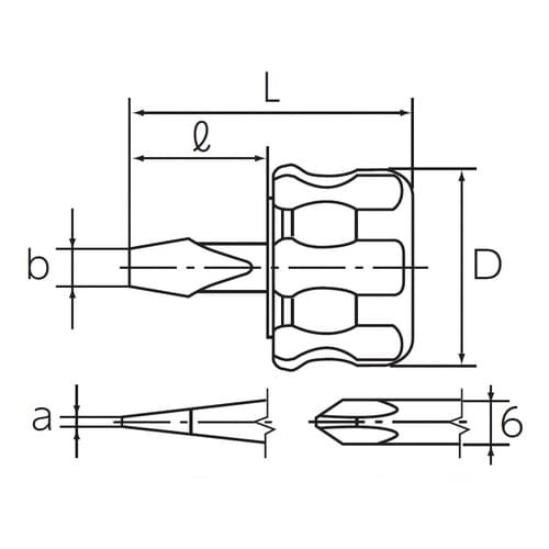 タイプ:マイナス | 刃先厚(a;mm):0.7 | 刃先幅(b;mm):6 | グリップ径(D;mm):29 | 全長(L;mm):40 | 先端長…