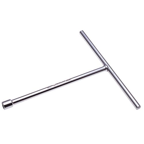 六角タイプのT形レンチです。ハンドル上面にサイズ刻印してあり、ツールステーションなどにつり下げた場合、確認しやすくなっています。
