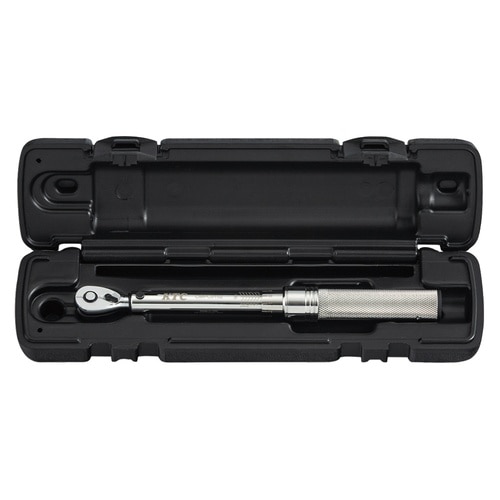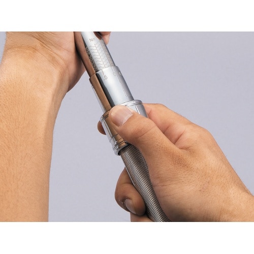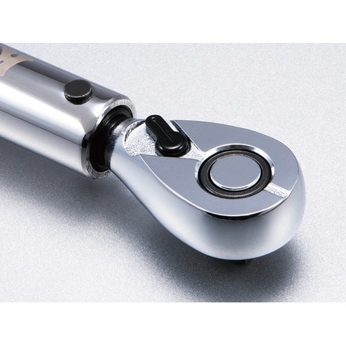 測定しようとするトルク値をあらかじめ設定できるので、連続して作業を行なう場合や目盛の読み取りが困難な場所で使用する時に効果を発揮します。設定トルクの変更はロックリングを指で引き下げグリップを回すだけの簡単操作。あらかじめ設定トルクに達すると軽いショックが手に伝わったり、「カチッ」という音がして締付け完了が確認できます。トルク値の設定操作を行いやすく、ローレット加工で滑りにくいグリップ。ラチェットヘッド部はプッシュボタンを押さない限り、ソケットの脱着を行えないユニオン機構採用。作業中のソケットの落下防止にも有効です。保管に便利な丈夫な樹脂ケース付きです。