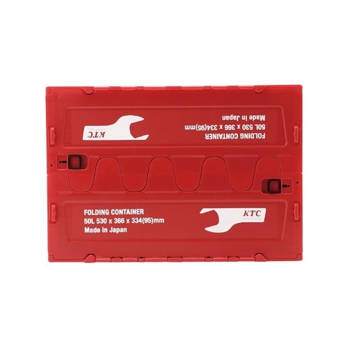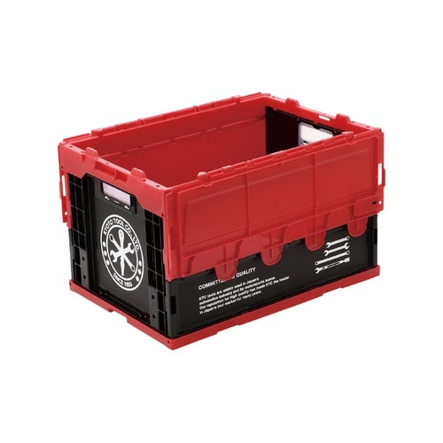 50Lの折り畳みコンテナです。畳んでいるときはレッド1色、組み立てるとレッドとブラックのツートンカラーが特徴的なコンテナに変身します。 |