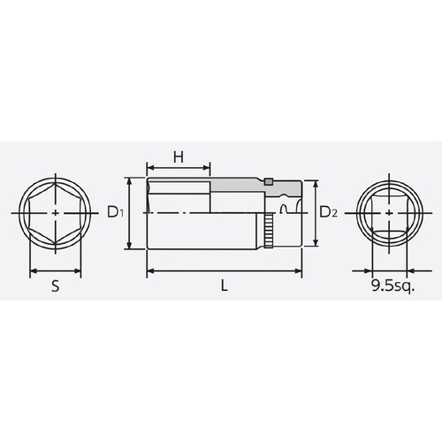 差込角(sq.):9.5 | 口径形状:六角 | サイズ(S;mm):14 | 寸法D1(mm):19 | 寸法D2(mm):18 | 寸法H(mm)…