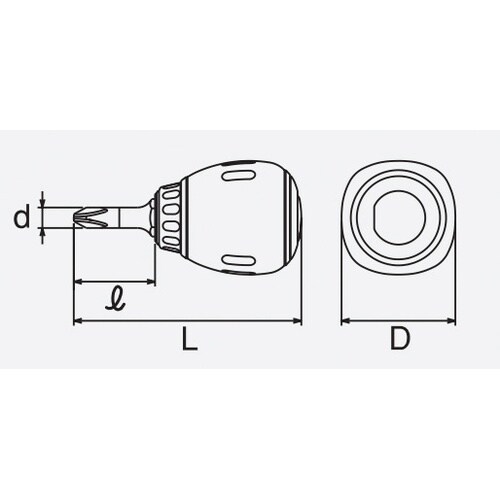 番手:No.2 | 軸径(d;mm):6.3 | グリップ径(D;mm):35 | 軸長(l;mm):25 | 全長(L;mm):70 | 質量(g)…