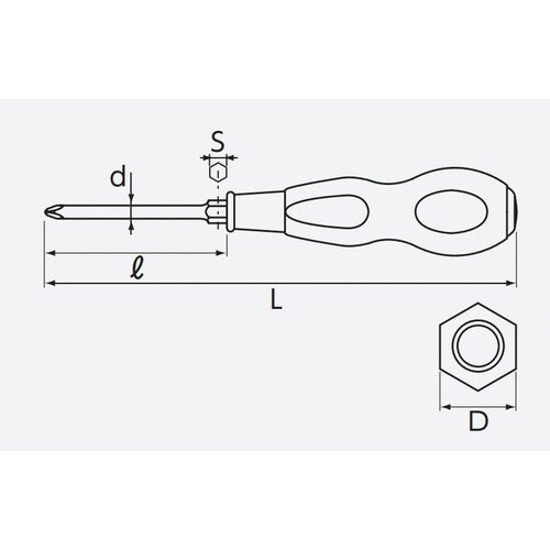 番手:No.1 | 軸径(d;mm):5.5 | グリップ径(D;mm):31 | 六角対辺(S;mm):8 | 軸長(l;mm):75 | 全長(L…