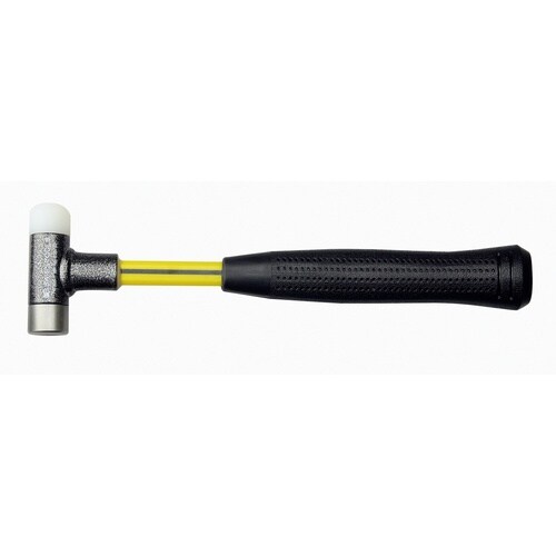内部にディスクが内蔵されたヘッドは、インパクトの瞬間にディスクが打撃面方向へ移動することで反動を打ち消し、打撃力だけを伝えます。ヘッドセンターは、一般的な小球の入ったタイプのものより頑丈に作られています。平型ヘッドにスチールインサート付きで丸型ヘッドはナイロン製です。柔らかく傷つきやすいものから、硬く頑丈なものまで、1本で作業できます。ヘッドは頭部にしっかりと固定されていますが、取り替えは簡単にできます。交換の際は300C(平型・スチールインサート)または300B(丸型)の適合するサイズをお選びください。ヘッドセンターはスチール製、溶接、塗装仕上げです。ハンドルは黒い合成ゴム付でシャフトはファイバーグラスでできており、シャフトチューブの底まではめ込まれています。