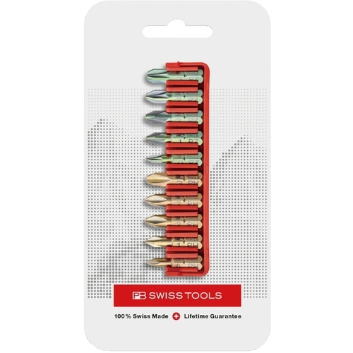 PBスイスツールズ 10本組 ショートタイプ プラス・ボジドライブビットセット ビットホルダー付 パッケージタイプ A07P-1525