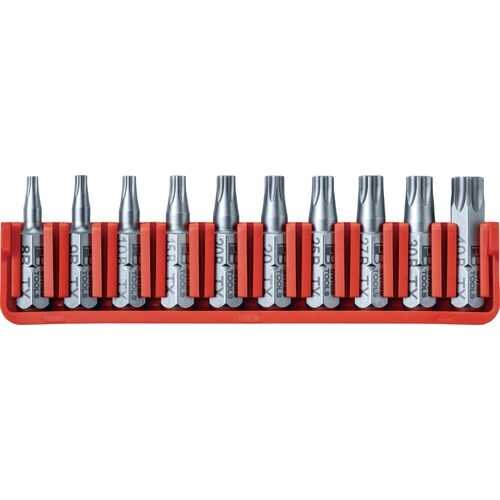 いじり止め付ヘクスローブビット(T8・9・10・15・20x2本・25・27・30・40)、ビットホルダー
