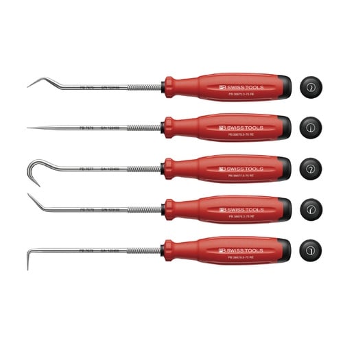 スイスグリップEVOで握りやすく、丸み先端で傷がつきにくいピックツール4本セット。 |