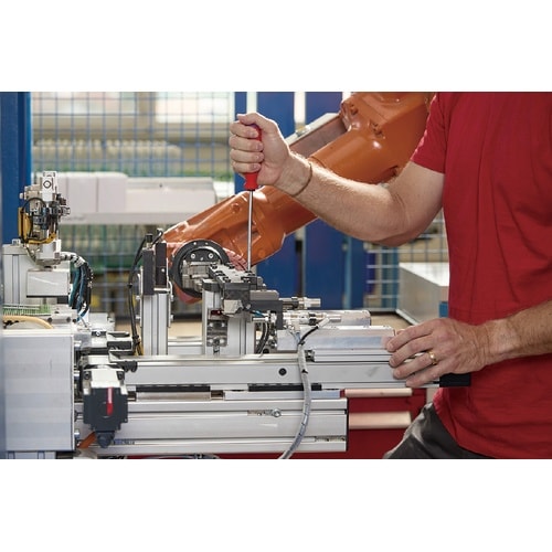 スイスグリップEVOは3種の素材からなる新型ハンドルです。ハンドル形状は円形に改良されており、使用時の疲労が少ないだけでなく、旧ハンドルと比較してトルク伝達が25%向上されました。ハンドル後部にはドライバーの先端形状のシンボルマークとサイズを表示していますので、作業に適したドライバーをすぐに選ぶことができます。ハイテク3K素材により、耐薬品性と機械的性能が強化されており、油や濡れた手で握っても滑りにくく、安全に使用できます。3Kハンドルの内部のコア素材は100% リサイクルされた硬質素材です。外側(中層コア)は部分的にリサイクルされた硬質素材です。最も外側は高性能な柔らかい素材が使用されています。
