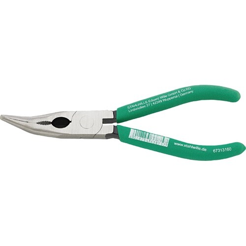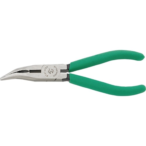 硬度HRC60の切断刃付きで、軟線・硬線の切断が可能な45°先曲がりラジオペンチ |