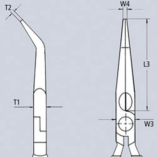 負荷のかかるつかみ、曲げ作業に最適なヘッド・先端部の強度を持つプライヤー。掴み面はクロスメッシュの刻み目が付けらています。材質はオイル焼き入れ焼き戻し処理済みのクロームバナジウム電気鋼。40°先曲りタイプ。ハンドルは複数の材質で作られたプラスチックカバー付き。