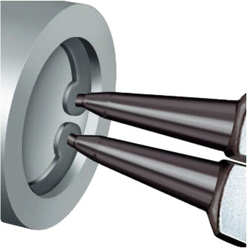 簡単に穴用スナップリングの取り付け、取り外しができます。鍛造により大変頑丈です。強靭で精密な先端チップはリングが外れて飛ばないように少し内側に向いていますので、安心して作業できます。材質はオイル焼き入れ焼き戻し処理済みのクロームバナジウム鋼。ストレートヘッド。
