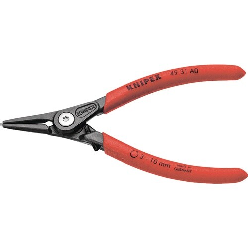 KNIPEX ストッパー付 軸用精密スナップリングプライヤー 直 グレー防錆コート プラスチックコーティングハンドル φ3−10 A07P-2387