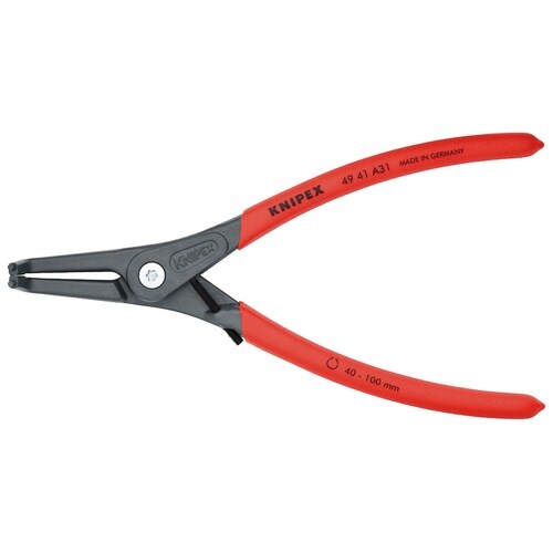 KNIPEX 90°先曲 ストッパー付 軸用精密スナップリングプライヤー グレー防錆コート プラスチックコーティングハンドル φ40−100 A07P-2393