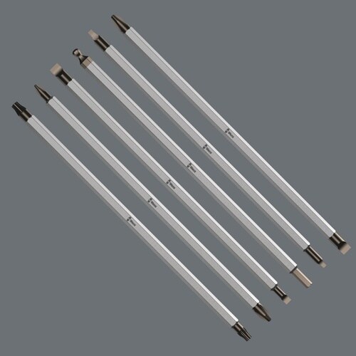 82シリーズ。クロムメッキ六角材。ブラックポイントチップは最適化された腐食保護により完璧なフィット感を提供します。1つのブレードに2つの異なるドライブを搭載。長さ175mm、六角対辺6mmの両頭ブレードは高品質のビット素材で作られているため、特に長い耐用年数が得られます。コンビネーションブレード十字穴バリオハンドル用プラス/マイナス。