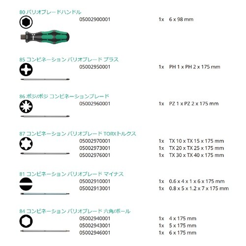 ハンドホルダーとブレードが付属したバリオ11点セット |