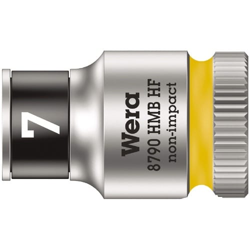 8790 HMB HFシリーズ。3/8インチのドライブと保持機能を備えたZyklopソケットは、ワークピースに取り組む際にネジを紛失するリスクを軽減し、非常に便利なネジ締めを実現します。サイズに応じて色分けされた「Take it easy」ツールファインダーで必要な工具に簡単かつ迅速にアクセスできます。 手動または電動工具操作用ソケット(非インパクト)。保持機能によりネジを工具にしっかりと保持します。クロムバナジウム鋼、マットクロムメッキ。ボールストップ溝を装備し、下端にローレット加工を施し、グリップ力を向上させています。