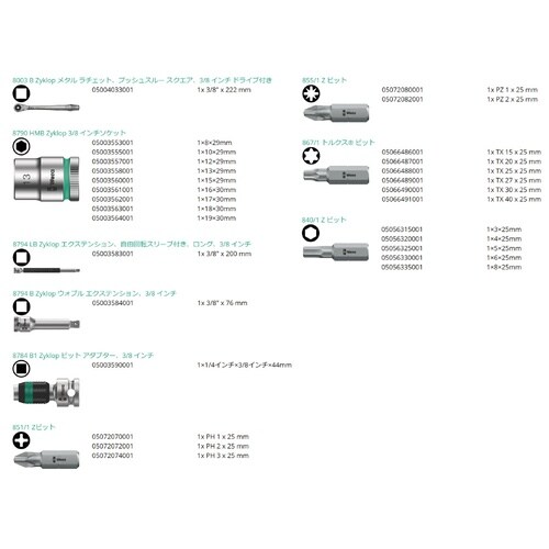 Wera 29点組 差込角3/8DR ZYKLOPソケットレンチセット スリムデザイナタイプ A07P-3591