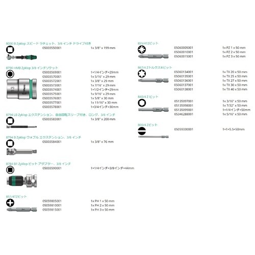 Wera 29点組 差込角3/8DR ソケットレンチセット ラチェットレンチ戻り角5度 A07P-3593
