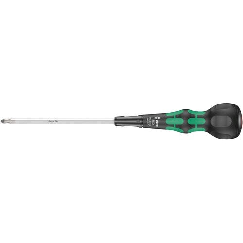 プラスネジ用のKraftformハンドルシリーズ 1800を備えたドライバーです。ハンドルが手にピッタリと収まります。凸型形状により、高いトルクの伝達が可能です。ソフトハンドルゾーンは、良好なグリップ感とロスの少ないパワー伝達が得られます。硬いハンドルゾーンは、手のひらで圧力をかけている時でも、高いパワー伝達を可能にします。ハンドル上端の凹みが、ネジ回し使用時の微調整を容易にします。ハンドルとブレードの境目が狭いため、狭い場所の奥にあるネジにも容易に手が届きます。ハンドル後端には転がり防止機能が付いているので、作業場でツールが転がって迷惑になることがありません。Wera(ヴェラ)レーザーチップドライバーは、レーザー光線により、微視的に粗面化されています。粗面化された表面がネジ頭に「食い込む」ので、予期せず外れることがありません。