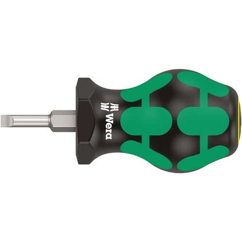 335 Stubbyシリーズ。手の届きにくい場所用の短い軸を備えた小型のドライバー。 ハードゾーンとソフトゾーンの便利な組み合わせを備えた2つの要素のKraftformハンドルにより、しっかりとしたグリップと正確な作業が可能になる。 軸の特殊な表面処理により、高度な耐食性とネジへの最適な刃先精度が実現する。 六角の転がり防止は、作業場でビットが煩わしく転がり落ちるのを防ぐ。”Take it easy”の色分けシステムで形状によって色分けされています。