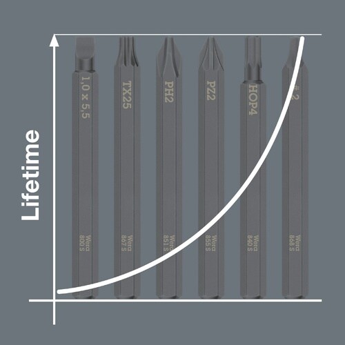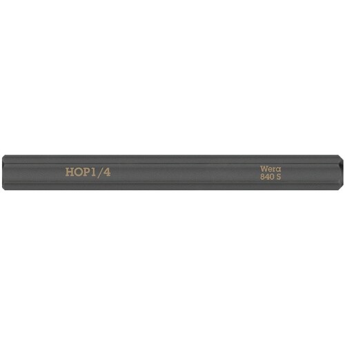 840 S ヘックスプラス インパクトドライバー用ビット。六角穴付ネジ用の超強靱なビットです。ビットの早期破損が防止され、非常に丈夫で長寿命。Hex−Plusにより六角穴付きネジが長持ちします。Weraインパクトドライバー921と併用。1/4インチ六角ドライブ付き。