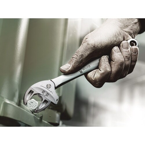 6004 Joker Lシリーズ。Joker6004は、自動的にボルトのサイズに合わせられる平行なダブルジョー付きで、公称サイズ(メートル法およびインチ)のすべてのオープンエンドレンチを置き換えます。平行で滑らかな開口部は、その表面圧力により、トルクを伝達する時に摩擦によるナットとボルトのエッジの変形を防ぐことができます。スパナ部のデザインにより、回転角度はわずか30°です。引掛穴により作業場の壁に固定できます。非磁性で六角ネジとナットを保持します。はめ込む時にレバー構造で滑りや損傷が避けられます。スパナ部のラチェット機能により、レンチを取り外すことなく、締め付け作業を迅速かつ簡単にできます。