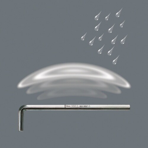 950 L シリーズ。クロムメッキにより、耐食性が高いです。サイズがレーザープリントされています。ヘックスプラスは、広く接触するように設計、これにより角だけではなく、連接する線にも接触、一般の六角レンチに比べて伝達トルクが20%向上でネジがなめるリスクも軽減しています。