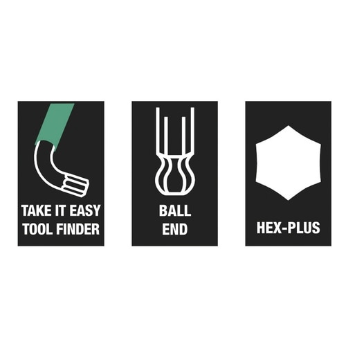 950 SPKLシリーズ。ソケット ヘッド ネジ用の指保護プラスチックスリーブは人間工学に基づいており、寒い気温でも握りやすい。Hex Plusプロファイルにより、ネジの頭部の接触面が大きくなり、ノッチングの影響は最小限に抑えられ、ネジ頭への損傷はほぼ解消されます。長いアームのボールペンにより、設置が困難な状況でも確実に作業できます。ブラックレーザー表面処理は、腐食に対しても優れた表面保護を提供し、長寿命を実現します。レーザー彫刻による耐摩耗性のサイズマーキングが施されており、迅速なアクセスが可能です。