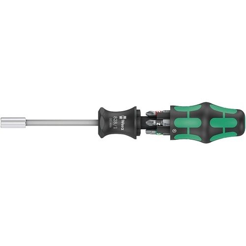 Kraftform Kompakt 27セット1。ビットマガジン付きビットホルダー。強力な永久磁石でビットをしっかり保持。ビットを保管するためにハンドルに組み込まれたマガジン。ハンドル一体型ビットマガジンで、高負荷時のビット先端のねじれを防ぐトーションゾーン付ビット6本を付属。プロファイルとサイズスタンピングに応じた色分け。人間工学に基づいたねじ回しのためのマルチコンポーネントクラフトハンドル。