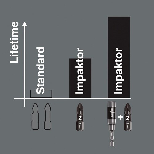 840/1 IMP DCシリーズ。高品質のインパクター六角ビット。インパクターテクノロジーにより、厳しい作業環境下でも平均以上の耐久年数を保ちます。先端にダイヤモンド粒子がコーティングされており、リセス(ネジの窪み)に食いつき、カムアウトを防ぎます。ヘックスプラス形状により、リセス(ネジの窪み)と点ではなく面で接触するよう造られ、その接触面も広く設計されており、力を加えたときに分散して伝達されるのでリセス(ネジの窪み)が損傷することを防ぎ、なめにくくなります。1/4”六角差し込み、DIN ISO 1173−D 6.3基準のホルダーに対応しています。Take it easy色分けシステム形状によって色分けされています。