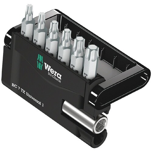 6つのWera TORXビットを狭いスペースにわかりやすく配置した実践的なビットチェックです。 |