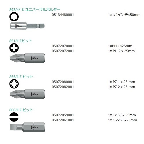 実践的なビットチェックで狭いスペースに6本のWeraビットをわかりやすく配置。 |