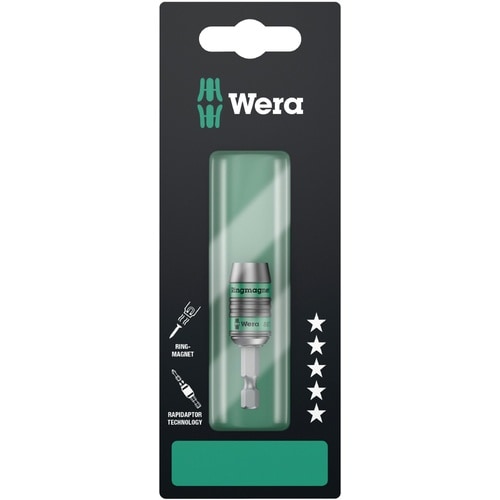 DIN ISO 1173−C 6.3およびE 6.3(ISO 1173)に準拠した1/4インチ外付け六角ドライブを備えたビット用のRapidaptorユニバーサルホルダー |