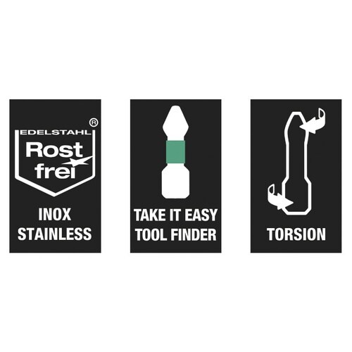 3855/1 TS SB ステンレスポジビット ブリスターパック入り。ポジドライブねじ用のステンレス鋼製の高品質ビット。Weraステンレスは、見苦しい余分な錆の形成を防ぐステンレス鋼で作られています。トーションビットはトルクのピークを吸収し、トーションゾーンで吸収するので、早期の摩耗が防止され、ビットの耐用年数が延長されます。1/4インチの六角形、DIN ISO 1173−D 6.3に準拠したホルダーに適しています。真空氷冷硬化。プロファイルとサイズに応じた色分けされたツールファインダー。