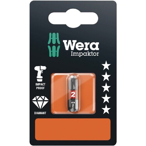 Wera ダイヤモンドコーティング プラスネジ用 インパクトドライバービット 差込6.35mm 刃先サイズPH2 全長25mm A07P-5419