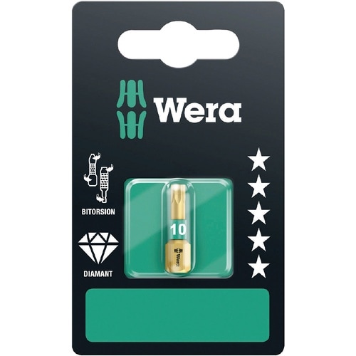 Wera ダイヤモンドコーティング 凹型トルクスねじ用 ドライバービット 差込6.35mm 刃先サイズTX10 全長25mm A07P-5797