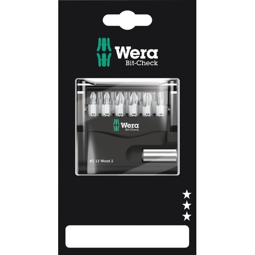 Wera 12点組 ビットチェック ビットセット 木工用#2 ビットホルダー付 差込6.35mm プラス・ポジ・トルクス A07P-5960