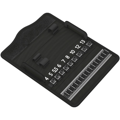 9417テキスタイルポーチクラフトフォームコンパクトサイクロップミニ 2。最大長13mmまでのソケットレンチが収納可能。省スペースの工具保管用の堅牢なテキスタイルボックス。軽くてしっかりとした素材を使用しているので携帯用に最適です。強力な面ファスナーシステムにより、意図せず開いたりツールが紛失したりすることを防ぎます。Wera 2 goと互換性があります。